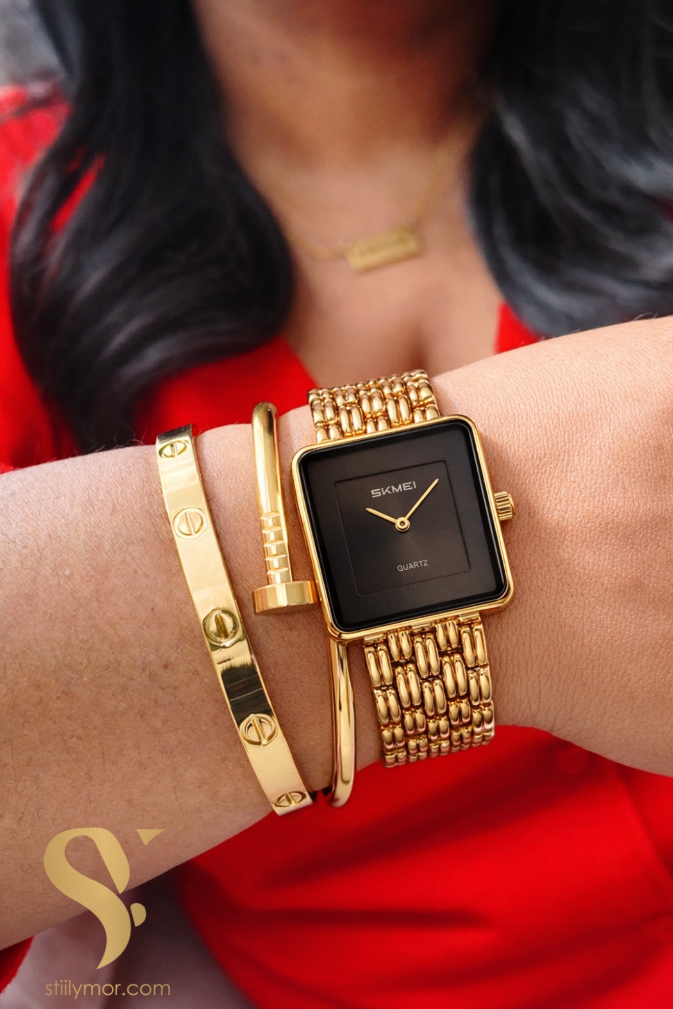 Este reloj cuadrado de estilo clásico y moderno está fabricado con acero inoxidable (stainless steel) de alta calidad, lo que le da durabilidad, resistencia y un acabado dorado elegante que combina con tus piezas de joyería favoritas. Su diseño minimalista y sofisticado lo convierte en un accesorio versátil para usar todos los días o en ocasiones especiales.