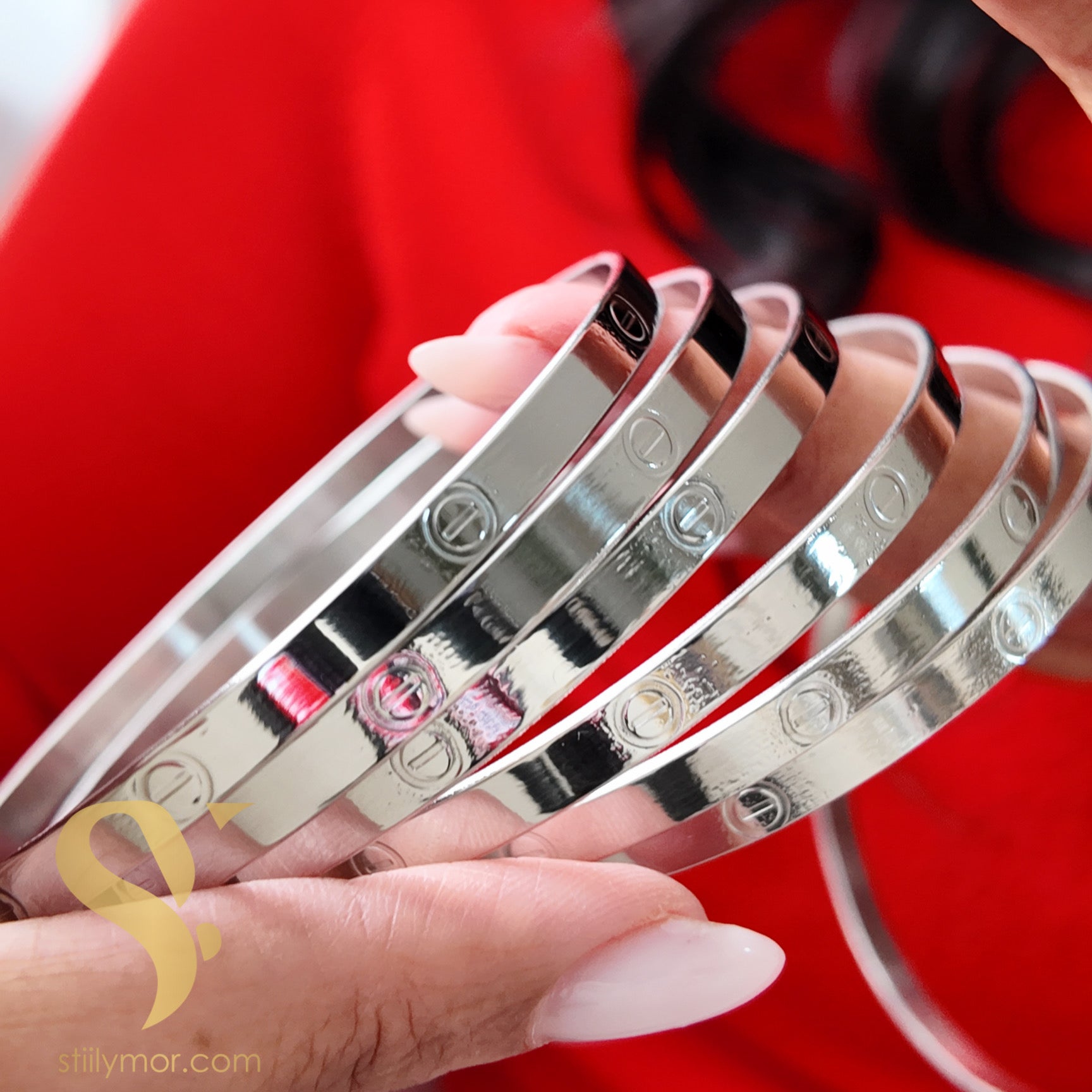 Elegantes brazaletes en acabado dorado pulido, ideales para uso diario o para combinar en capas. Están elaborados en acero inoxidable 316L, material reconocido por su durabilidad, resistencia al agua y a la decoloración, además de ser hipoalergénico.